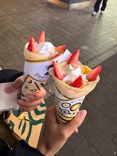 この間、るなちゃんと 退勤後にクレープデート‼️ ギゴの前にあるクレープ屋さんが 期間限定でヌテラやってた‼️ ヌテラクレープうますぎ、 なぜ期間限定???? ずっとやってくれー!!!! 私はヌテラいちごホイップを食べたよ!!!!!! いつまでこのメニューあるか知らんけど みんなも食べてみてくれ!!!